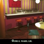 9&10. Ice Cream Store #1 by Gregory J. Ward. This stereo pair is of an ice cream store with accurate lighting. It was created using RADIANCE custom ray tracing program for lighting simulation on a Sun 3/60 and a Dicomed. Contact: Gregory J. Ward, Lawrence Berkeley Laboratory, I Cyclotron Road, 90-3111, Berkeley, CA 94720, ( 415) 486-4757.