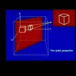 35. Perspective projection creates an effect similar to the human visual system. Perspective projections are categorized according to the nuinber of principal axes that the projection plane cuts. One-point perspective cuts one principal axis.