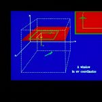 49. Using the projection of the view up vector, the view reference point at the coordinate centre and the view plane normal, we can set up a left-handed coordinate system on the view plane called the uvw-system.