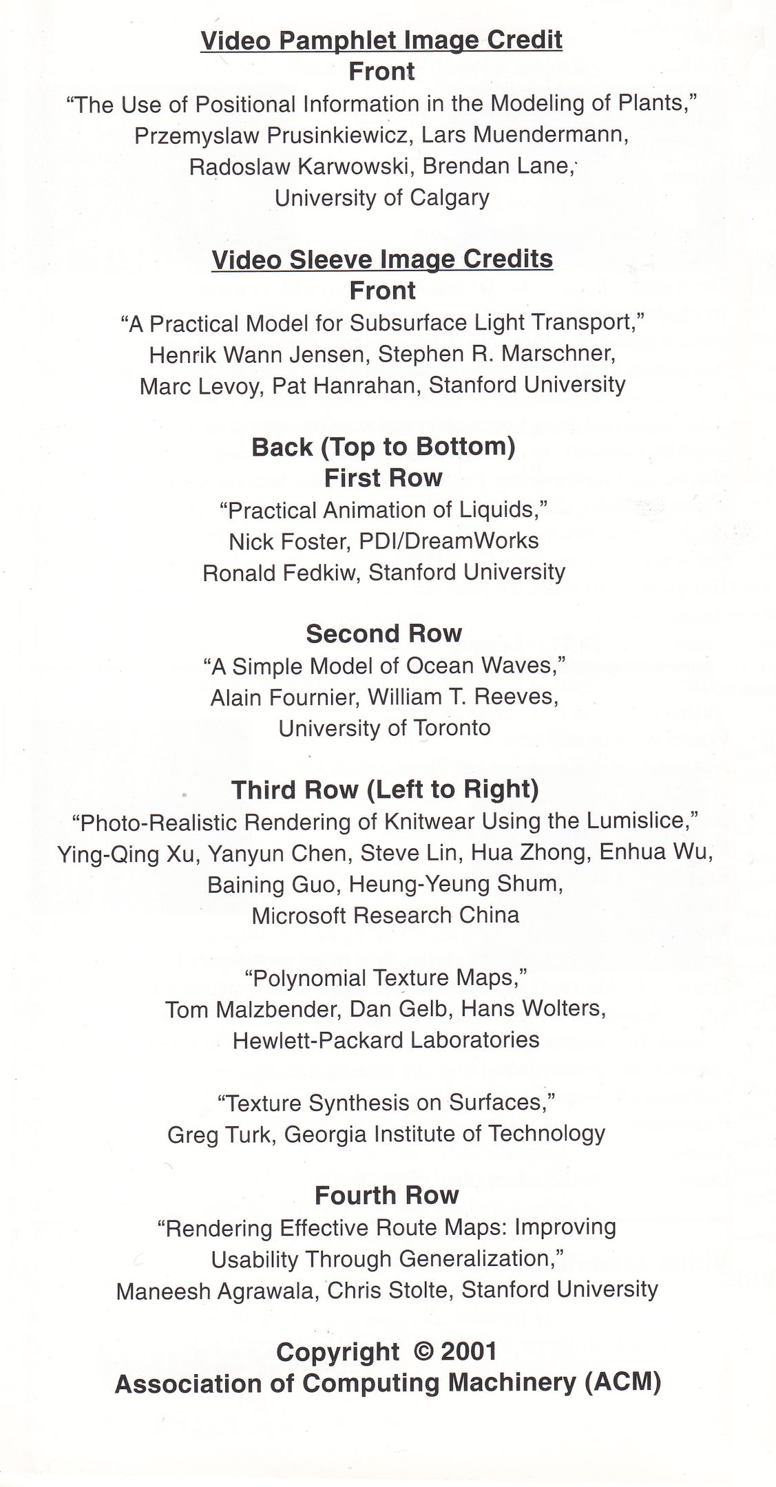 “2001 Conference Proceedings on Video Tape”, 2001 – ACM SIGGRAPH HISTORY ARCHIVES