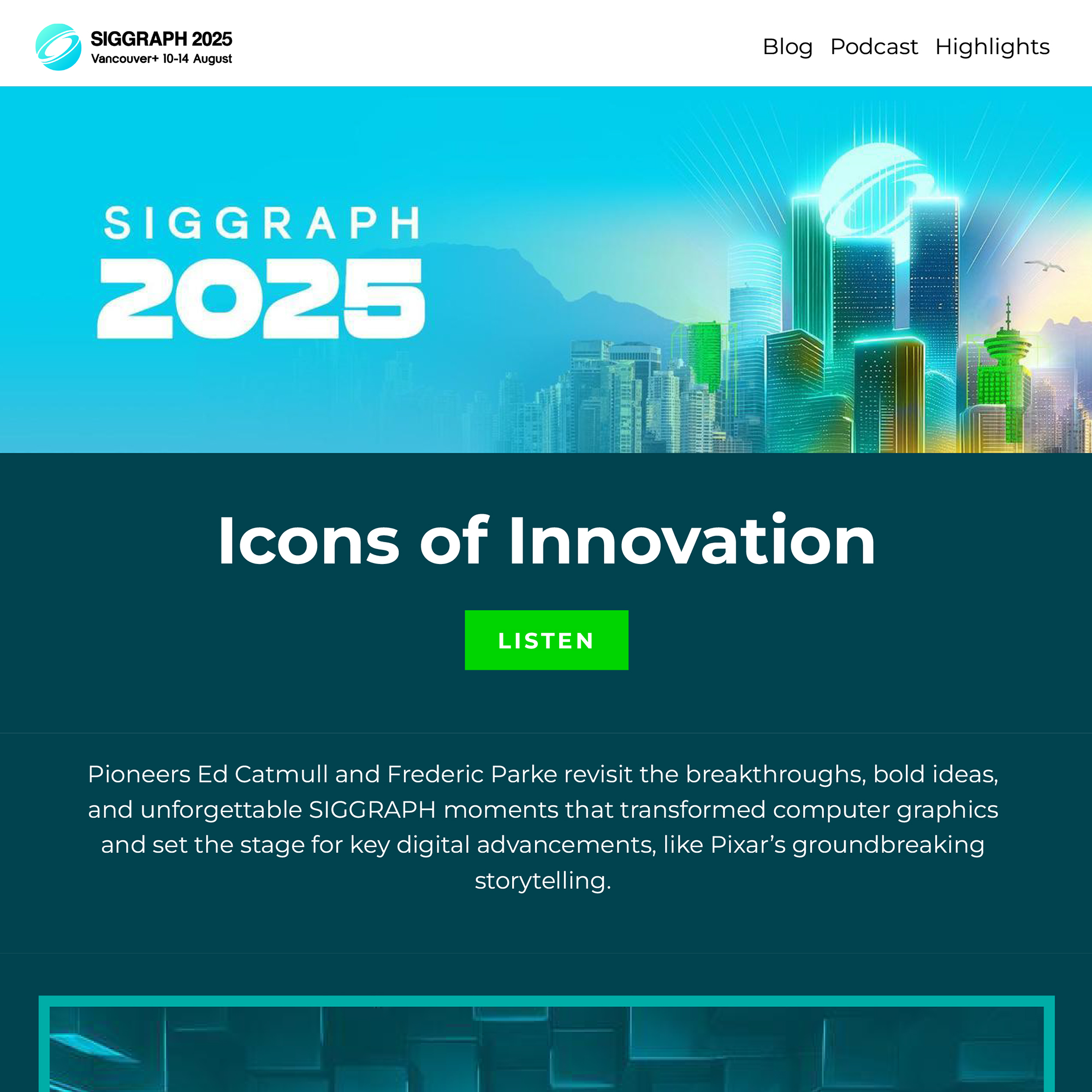 Keynotes/Featured Speaker Overviews: SIGGRAPH