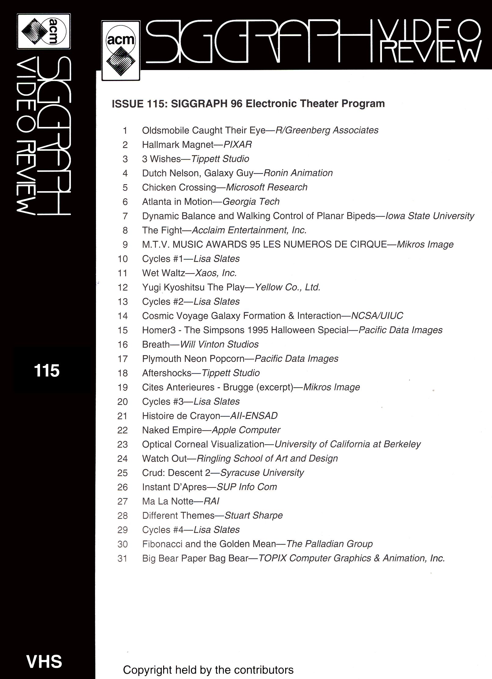 Issue 115: SIGGRAPH 96 Electronic Theater Program